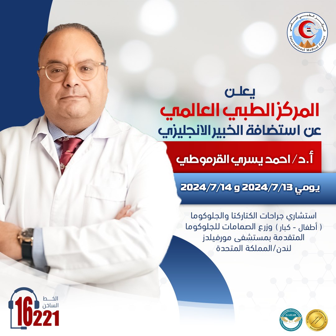 يتشرف المركز الطبي العالمي باستضافة الخبير الإنجليزي البروفيسور/ أحمد يسري القرموطي