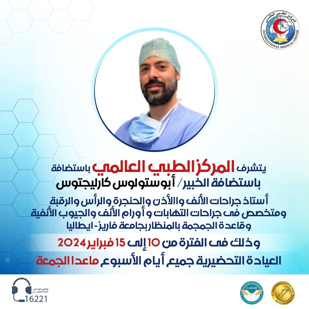 The International Medical Center is honored to host the expert Prof. Apostolos Karligkiotis Professor of Otolaryngology, Head and Neck Surgery He specializes in endoscopic surgeries of infections and tumors of the nose, sinuses, and base of the skull at Varese University – Italy.